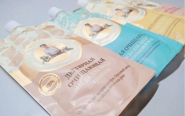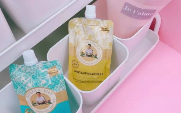 俄罗斯的 品牌,是 袋装涂抹式面膜,使用方便,相对也 干净卫生,不容易污染。一袋的 分量不少,大概可以用六七次左右。百分百纯天然 的 植物成分,但 是 使用之前也 是 建议在 耳后、手臂做过 敏测试。老奶奶面膜一共有 七个颜色七个款式,分别有 不同的 功效。其中驼色是 清洁面膜,控制水油平衡去黑头;粉色是 维他 命营养修复美白面膜,果冻状易抹开,味道像果酱;紫色抗皱衰老,提亮肤色;蓝绿色是 深层保湿补水,镇定皮肤;浅绿色提拉紧致,含有 维生素A和 维生素C;蓝色是 深层清洁,成分是 活性蓝泥,清洁力度比较大可能会有 微微刺痛感;黄色是 深层滋养修复,改善气色。