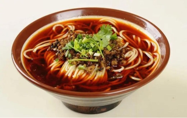 担担面是四川小吃中的代表性食物,面是干捞放碗里再加臊子,有碎肉臊子包括碎牛肉或碎猪肉,还有黄鳝臊子,也有肉沫黄瓜丁丁等等,基本上都是一次吃三碗不同的臊子面,那味道真好真难忘。【粉丝网】