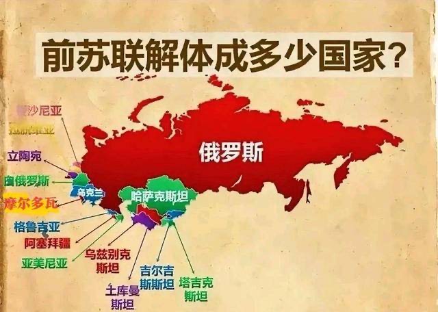1991年,苏联解体为15个国家,5个在中亚,3个在高加索,6个在东欧,还有俄罗斯。
