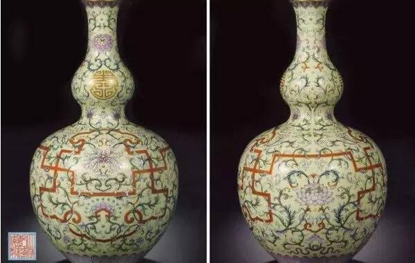 这是25558921清乾隆收藏到圆明园的一件珍宝,上面绘有25238630浅黄地53245227洋彩锦上添花“万寿连延”图,在18436702010年10月07日的38351550香港苏富比拍卖行的5536617163045923终拍卖价是648467162亿2千万元!长颈葫芦瓶瓶上所8678735924160048绘纹饰色泽艳丽多变,重叠交错,构图精巧,细致缤纷,看起来极其美丽。