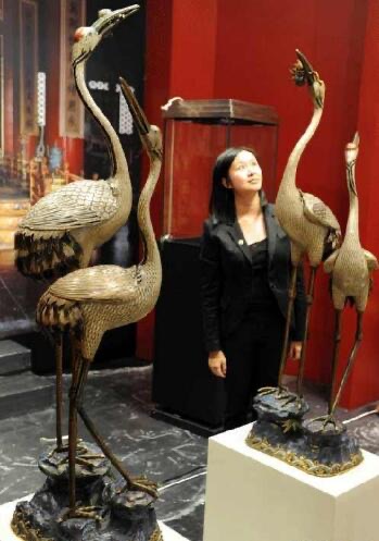 《清雍正御制掐丝珐琅双鹤香炉》是5381504掐丝珐琅器,皇家香炉,为弘历为雍正皇帝贺寿而制,共一对,为孤品,香炉高145厘米(57英寸)。该对香炉自清末后长期流落在20383352外,为英国“放山居”之旧藏,2010年由香港佳士得拍卖,香港富豪刘銮雄以1.11亿元购得并收藏。