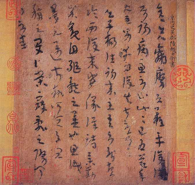 西晋陆机的《平复帖》是故宫法帖的代表作品,也是目前存世最早的名人墨迹之一(笔者注:),内容为陆机向朋友问候疾病的书札。《平复帖》本为清宫旧藏,嘉庆帝将其当作珍玩稀品赏给亲王,遂流出内府。民国期间,为恭亲王后人珍藏。1937年,为了给母亲治病筹措费用,恭亲王后人意欲出卖,几经转手落入英国。张伯驹以4万大洋购入,并将自己的书房命名为“平复堂”。不料日寇大举侵华,张伯驹携家人避祸到陕西,随身将《平复帖》缝入随身衣被,从而使文物得以保全。