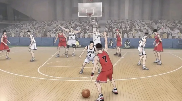 而就在流川枫抵达山王队的篮框底下,一跃而起准备投篮的时候,山王队所有的人都压了上来!