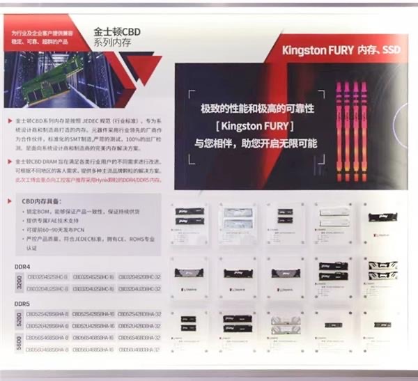 用户在工博会上更为关注的是金士顿最新推出的超频服务器内存,这款产品可满足新一代工作站和高端台式机的运行需求。Kingston FURY Renegade Pro DDR5 RDIMM内存系列拥有更高的带宽和可靠性,同时不会牺牲服务器级内存所具备的数据完整性和高质量等级,可以充分满足创作者、工程师和数据科学专家等专业人士的最新应用和工作需求。该内存系列支持Plug N Play,且通过了XMP 3.0认证,拥有预优化时序、速度和电压,能够实现强大的超频性能,通过认证的主板配合四通道级八通道套条,只需选择一个配置文件,即可实现最高6000MT/s的传输速度。